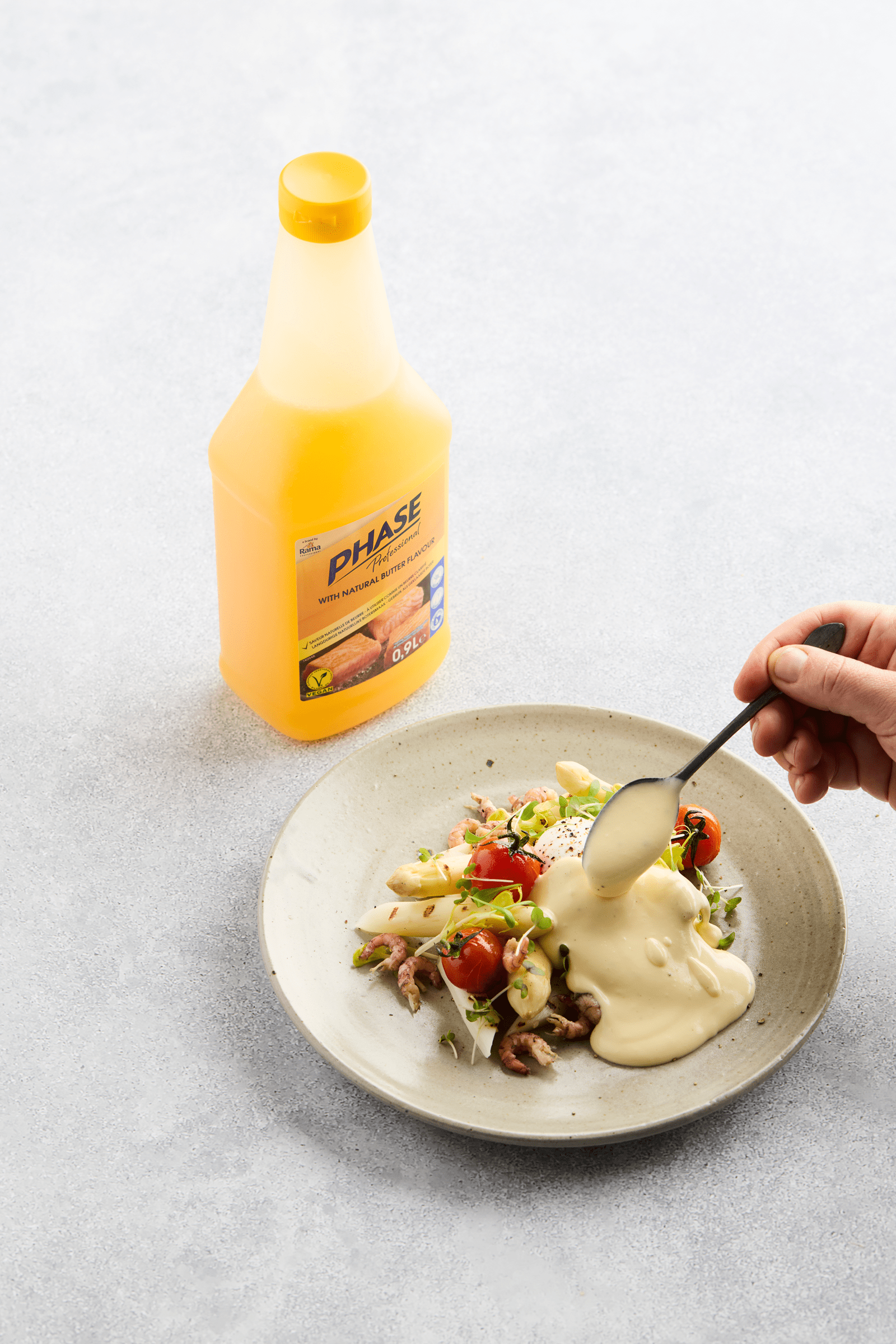 Les asperges avec œuf poché et sauce hollandaise sont un classique intemporel de la cuisine professionnelle. Avec Phase de Flora Professional, vous réalisez une sauce stable et onctueuse qui tient parfaitement pendant le service, sans lactose ni produits laitiers. Idéal pour les menus de printemps et parfaitement adapté aux préparations à base de poisson, de crustacés ou de légumes.